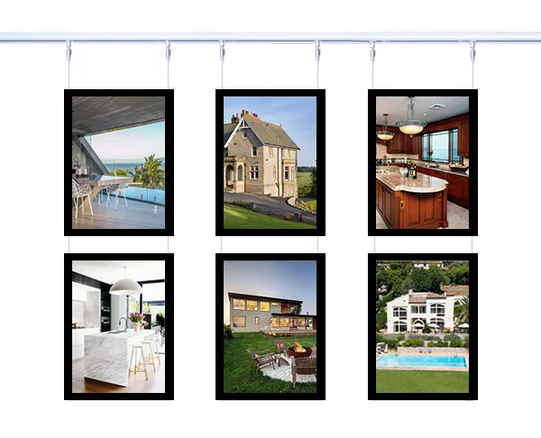 Transparent acrylic cable real estate display for non-illuminating shop front signs. Made with brand new acrylic that resists yellowing in strong sunlight. Available in A0, A1, A2, A3, and A4 sizes, in both landscape and portrait orientations