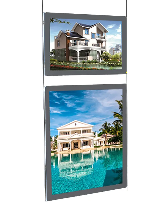 Double-sided LED lightbox for real estate window displays. This hanging lightbox sign features magnetic front and back panels. Made with super bright, diffusion-enhanced acrylic that resists yellowing even in strong sunlight. Available in A1, A2, A3, and A4 sizes with either silver or black panels. Enhance your display with Vision backlit paper for stunningly vibrant and rich images.